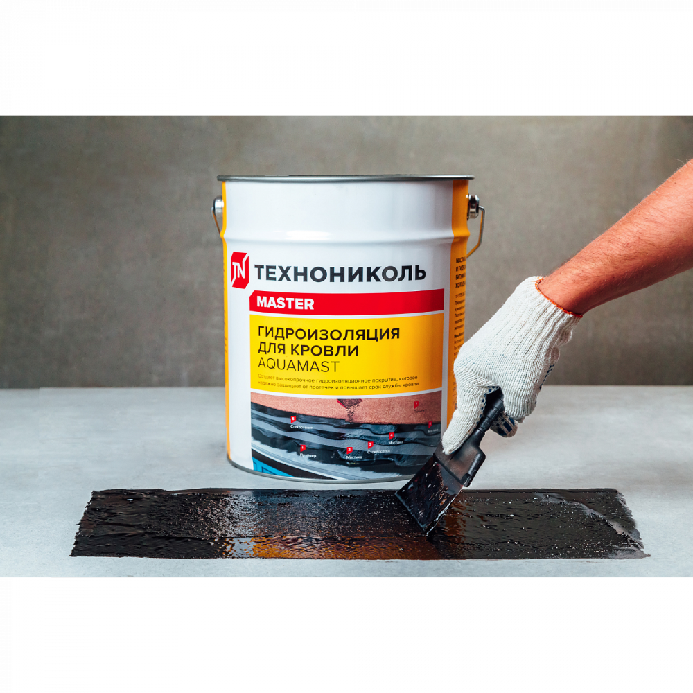 Мастика битумно-резиновая AquaMast 18 кг от ТЕХНОНИКОЛЬ — универсальный гидроизоляционный материал, готовый к применению. В составе: нефтяной битум, измельчённая резина, технологические добавки, минеральные наполнители и органический растворитель. Формирует эластичное, прочное и бесшовное покрытие, устойчивое к влаге, агрессивным веществам и механическим нагрузкам. Наносится шпателем или кистью на бетон, металл, дерево, поверхности с любой геометрией.