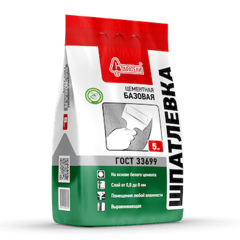 Шпатлевка цементная Базовая Старатели 5 кг предназначена для выравнивания и устранения дефектов на стенах и потолках, выполненных из различных строительных материалов, таких как бетон, кирпич и гипсокартон. Этот состав идеально подходит для внутренних работ с нормальной влажностью. Шпатлевка обладает отличной адгезией, легко наносится и выравнивается, образуя прочную и долговечную поверхность. Она не даёт трещин и деформаций при высыхании, а также обладает хорошими гидрофобными свойствами, что позволяет использовать её в помещениях с повышенной влажностью.