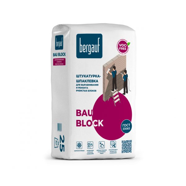 Штукатурка-шпатлевка 25кг цементная для выравнивания и ремонта ячеистых блок. Bau Block Bergauf (56)