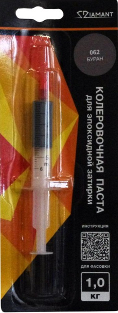 Колеровочная паста 062 Диамант- Буран 1 кг предназначена для ручной колеровки эпоксидной затирки Diamant. Она позволяет точно и эффективно изменять цвет затирки, обеспечивая идеальное сочетание с дизайном помещений. Паста поставляется в удобных шприцах, что облегчает дозировку и добавление необходимого количества для получения требуемого оттенка. Поставляется в упаковке с QR-кодом, который предоставляет подробную инструкцию по применению.