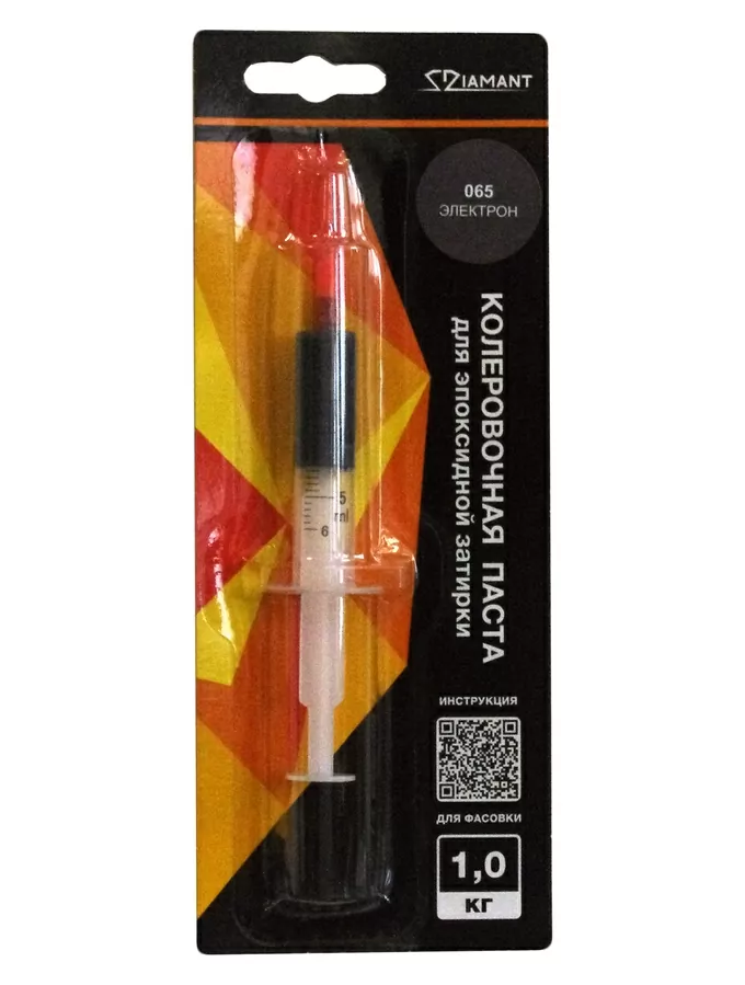Колеровочная паста 065 Диамант- Электрон 1 кг предназначена для ручной колеровки эпоксидной затирки Diamant. Она позволяет точно и эффективно изменять цвет затирки, обеспечивая идеальное сочетание с дизайном помещений. Паста поставляется в удобных шприцах, что облегчает дозировку и добавление необходимого количества для получения требуемого оттенка. Поставляется в упаковке с QR-кодом, который предоставляет подробную инструкцию по применению.