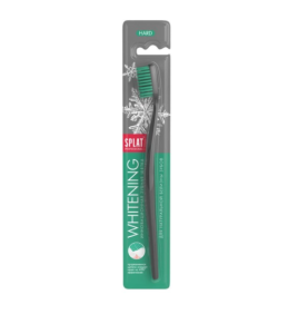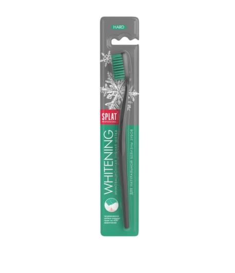 Инновационная отбеливающая зубная щетка SPLAT Professional WHITENING с жесткой прорезиненной щетиной интенсивно и безопасно удаляет налет с эмали - как ластик стирает карандаш с бумаги. Специальное резиновое покрытие каждой щетинки позволяет на 40% эффективнее очищать зубы, чем это делает обычная нейлоновая щетка. При этом закругленные кончики щетинок не травмируют эмаль и гарантируют безопасность чистки. Щетка WHITENING для белоснежного оттенка зубов не имеет аналогов в мире!