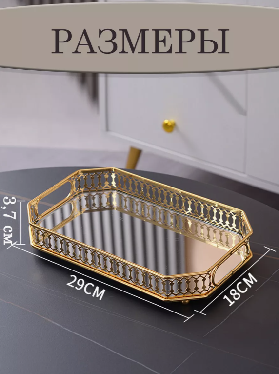 • Может служить как поднос для подачи блюд, так и стильное решение для хранения косметики и аксессуаров.