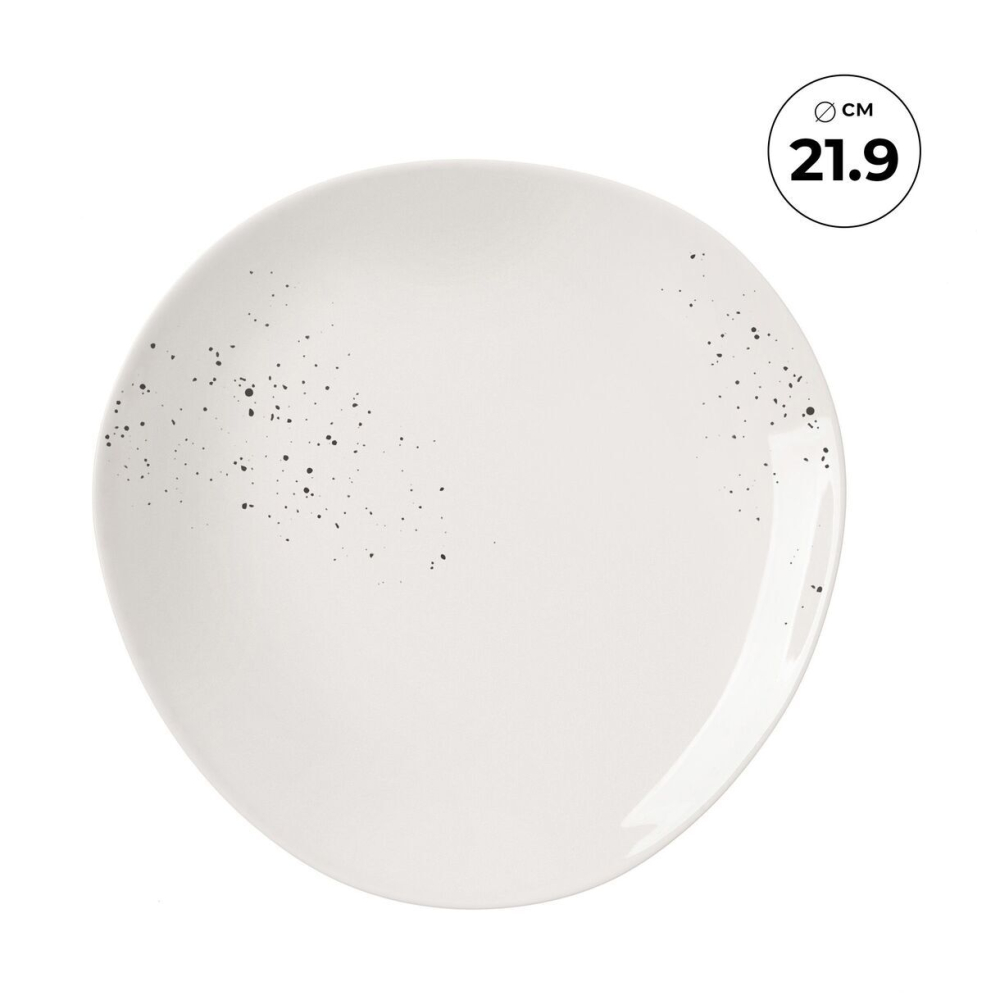 Материал: посуда фарфоровая; цвет белый, черный; диаметр 21,9 см, высота 2,2 см +/- 2 мм; вес 370 г +/- 15 г