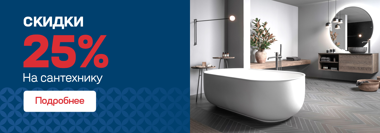 Только до 28 февраля мы дарим скидку 25% на популярные категории сантехники. Обновите ванную комнату с комфортом и выгодой — в наличии множество моделей от ведущих производителей.